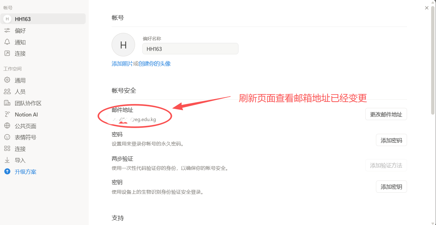 - 点击“更换邮件地址”,先输入原邮箱验证码,再填教育邮箱地址并验证。