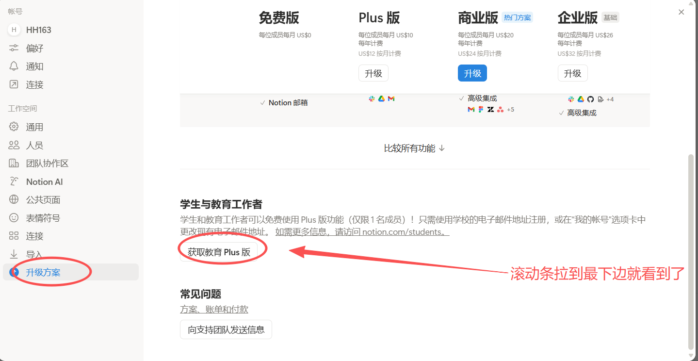 - 如果你已使用付费计划,需先降级为免费版,再申请教育版。